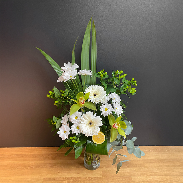 #1 À la réception rafraîchir la coupe des tiges, des fleurs et des verdures.